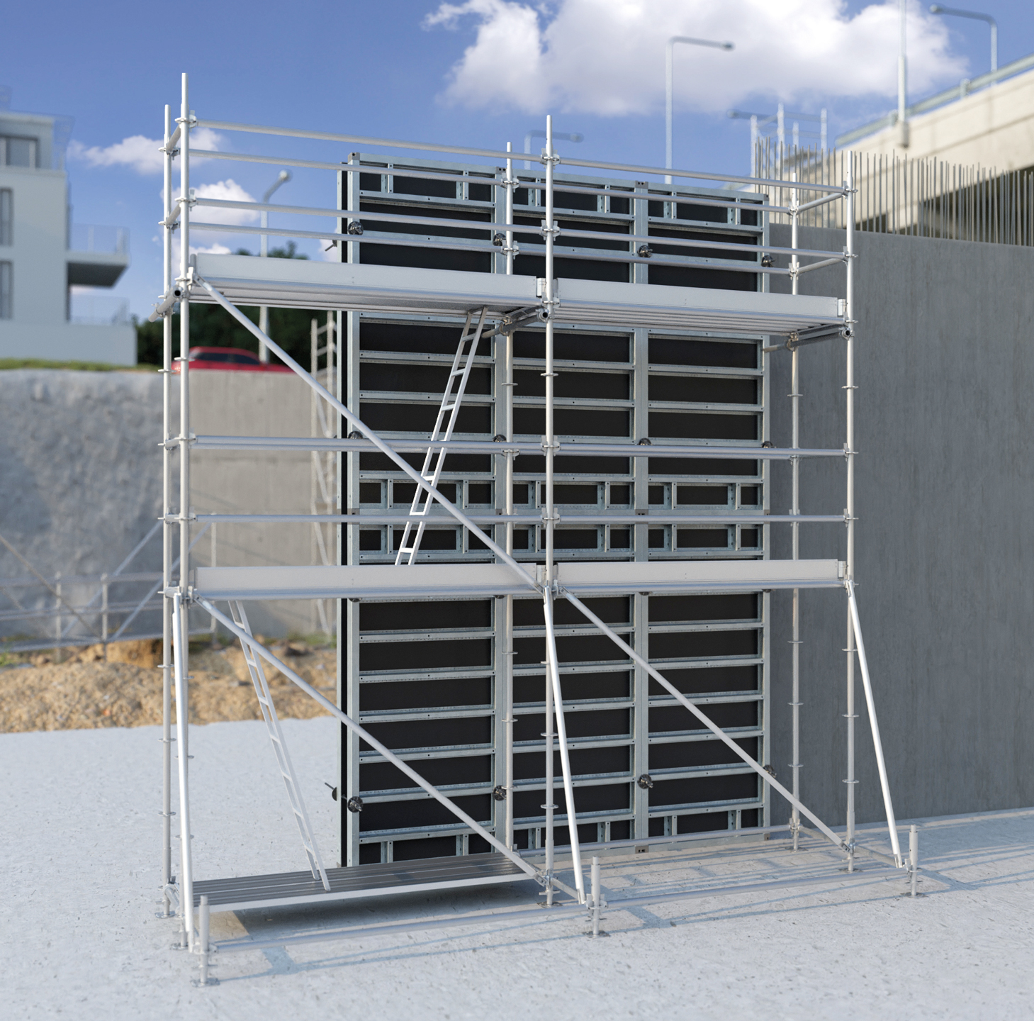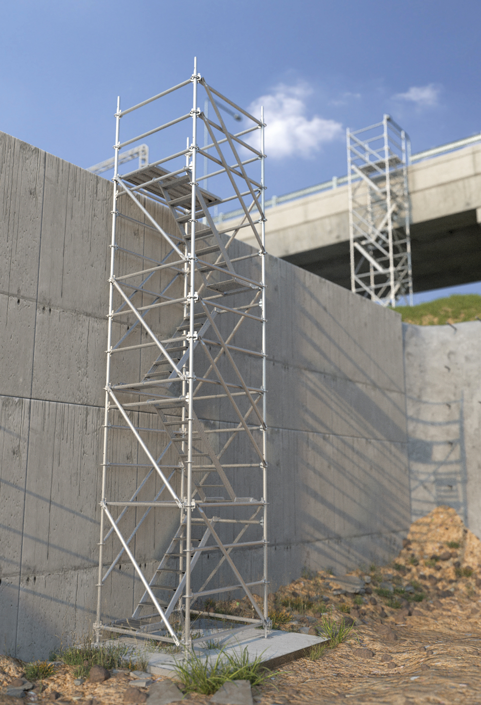 Scaffolding for construction sites is a significant growth area for the Tobler Group. Our biggest priorities are safety and cost effectiveness. As a market leader for scaffolding systems and a major formwork supplier, we offer you first-class construction site accesses and cable bridges.