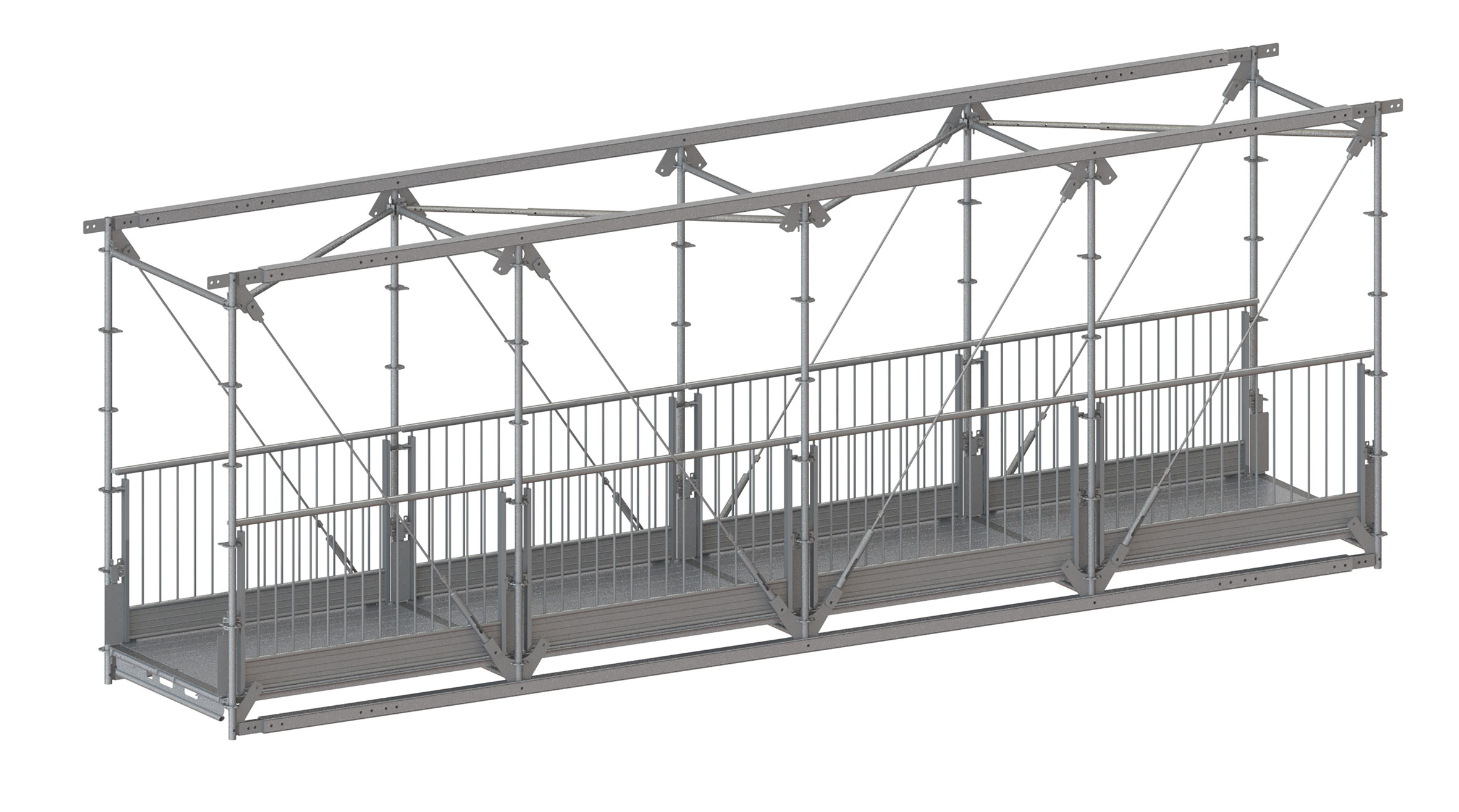 Le MATO Connect Road Bridge est la meilleure solution pour les installations temporaires telles que les chemins piétonniers ou les projets de travail. Avec une portée allant jusqu'à 36 m, le MATO Connect Road Bridge permet de franchir les routes et les obstacles les plus larges. Avec la technique d'échafaudage modulaire MATO 8 et des pièces spéciales nouvellement développées. Les revêtements MATO 3 apportent un sentiment de sécurité supplémentaire grâce à des surfaces antidérapantes et propres.