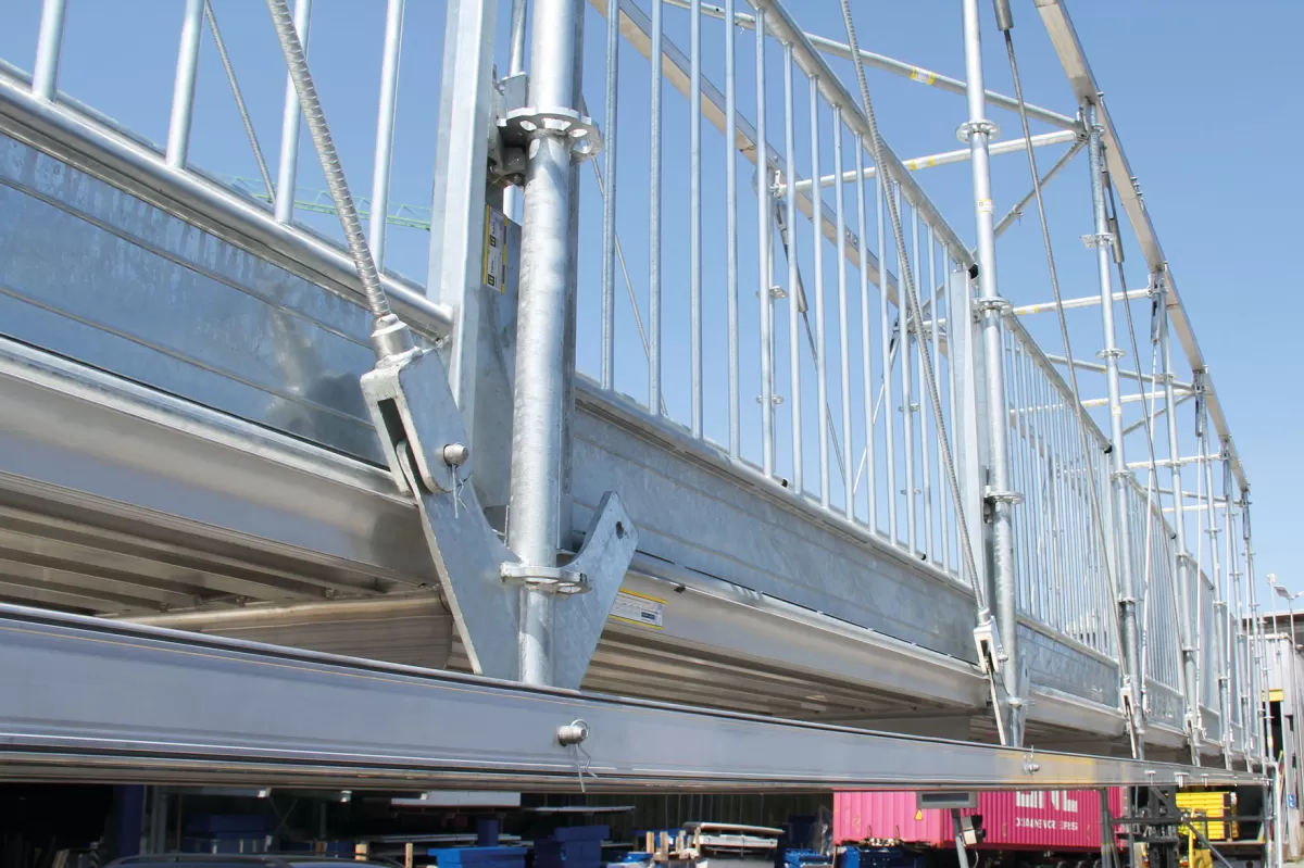 La connexion du MATO Connect Road Bridge aux tours d'escalier et autres accès se fait avec un minimum d’efforts et garantit un accès très rapide au chantier, à la surface du sol ou à l’étage.