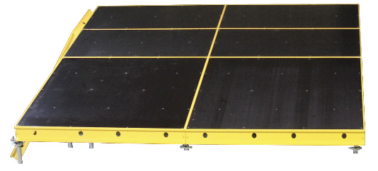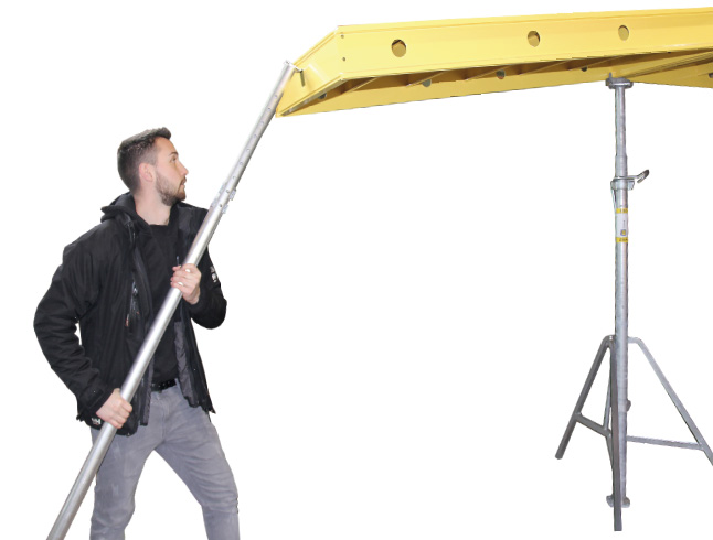 Une barre de montage en aluminium, légère et antidérapante à son extrémité inférieure, est utilisée pour le pivotement et la sécurisation temporaire des panneaux. La barre s’adapte à tous les types de panneaux Tobler Deck.